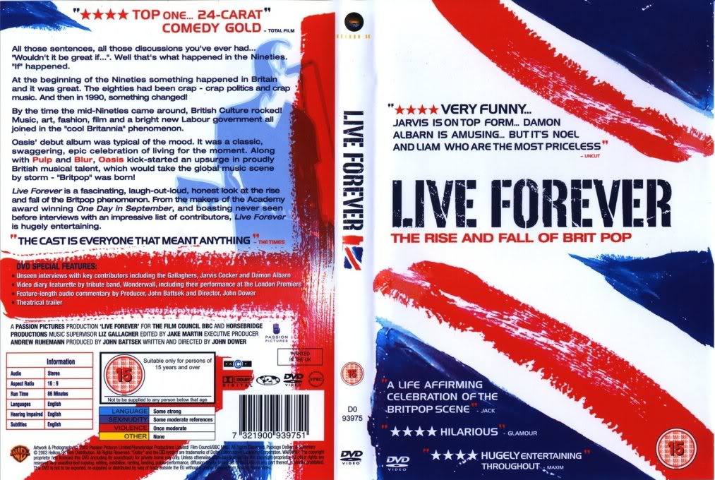 Live forever: The rise and fall of brit pop é um documentário escrito e dirigido por John Dower que, como bem explica o título, procura mostrar a ‘ascenção’ e a ‘queda’ do britpop, cena musical que como todos sabem engloba uma porção enorme de bandas britânicas dos anos 90.