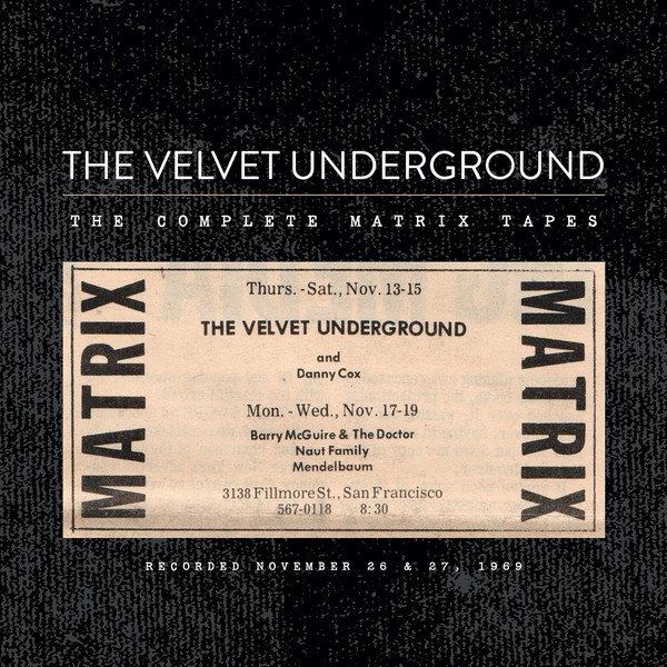 Apenas em novembro de 2015 os quatro sets gravados nas distantes noites de 69 viram a luz do dia, devidamente remixados e remasterizados, compilados na caixa The complete matrix tapes. São 4 horas e meia da mais pura loucura Velvetiana, com versões gigantes das já longas canções de Lou e cia., doses cavalares de experimentações, mudanças de letras, 4 versões pra mesma música e faixas nunca antes lançadas em discos de estúdio da banda.